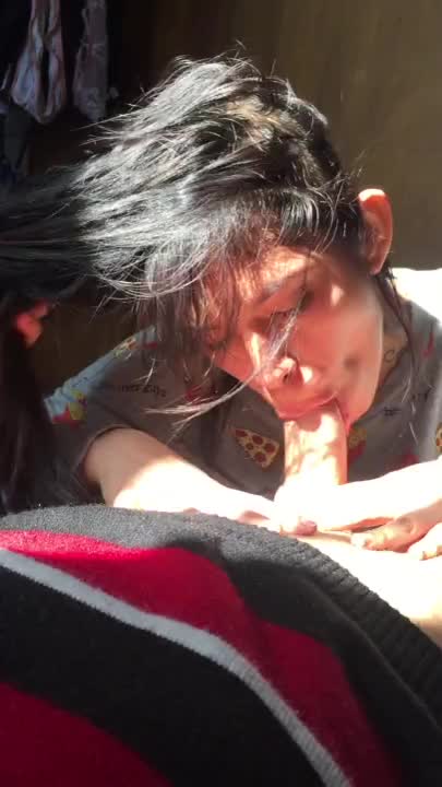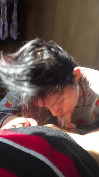 Молодчинка чуть, не давится а всё равно, сосёт!