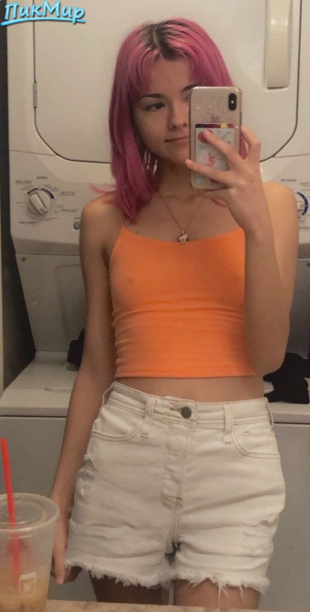 Красиво попозировала милочка с розовыми волосами и маленькими сисечками!