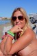 Шаловливая зрелая нудистка любит хвастаться своими горячими огромными сиськами на пляже