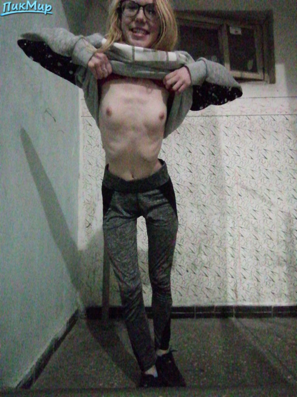 блондинка разделась в подъезде
