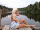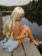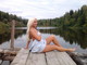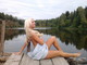 В студенную, зимнюю стужу, глаз радует очаровательная блондинка отдыхающаяя летом на природе.