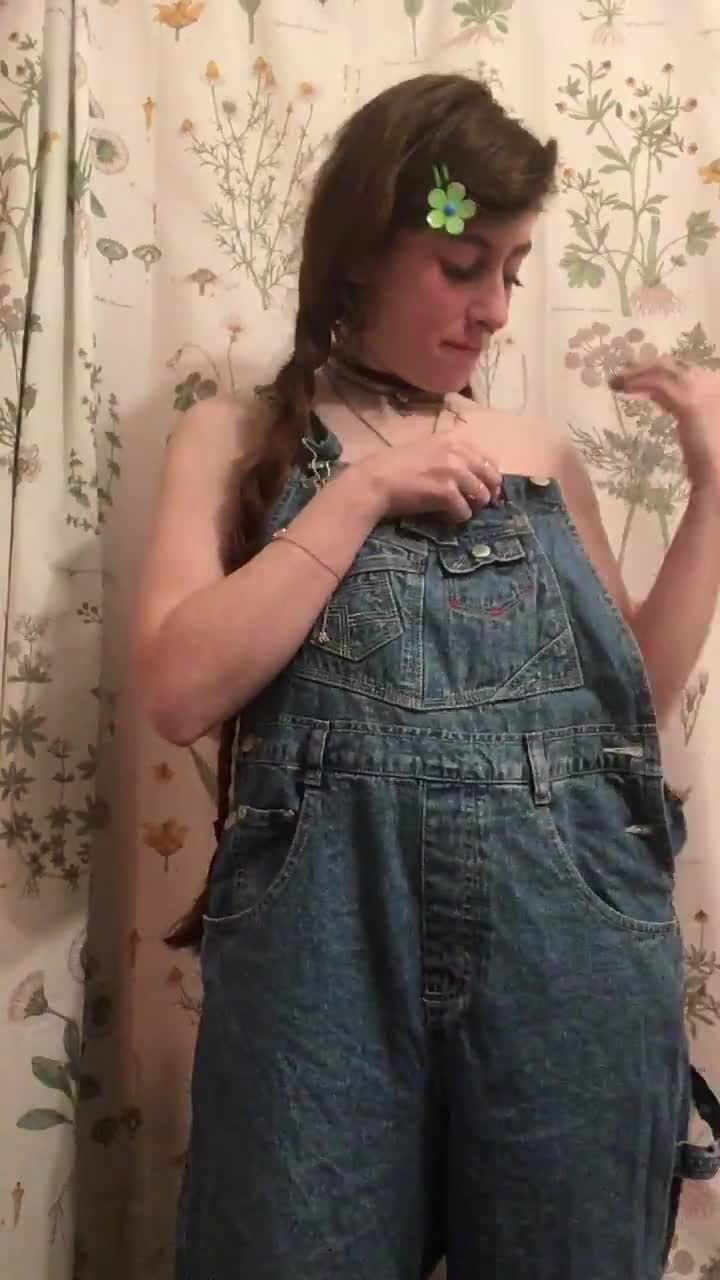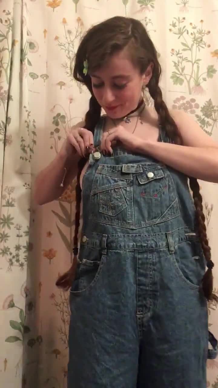 Девушка с косами стесняясь показала что у неё под комбинезоном нет белья