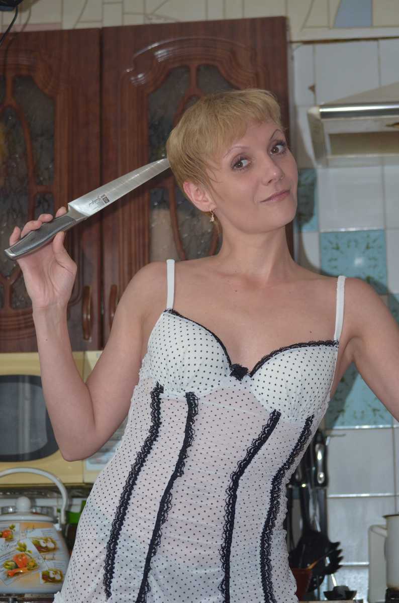 Хорошо смотрится дамочка на кухне в сексуальном белье