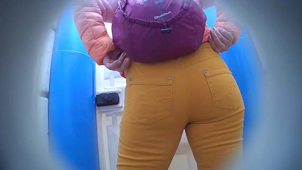 Женщина забежала пописать, испалила свою классную жопу и письку.