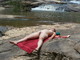 Раиска отдыхает на берегу горной реки , место безлюдное и она загорает голой