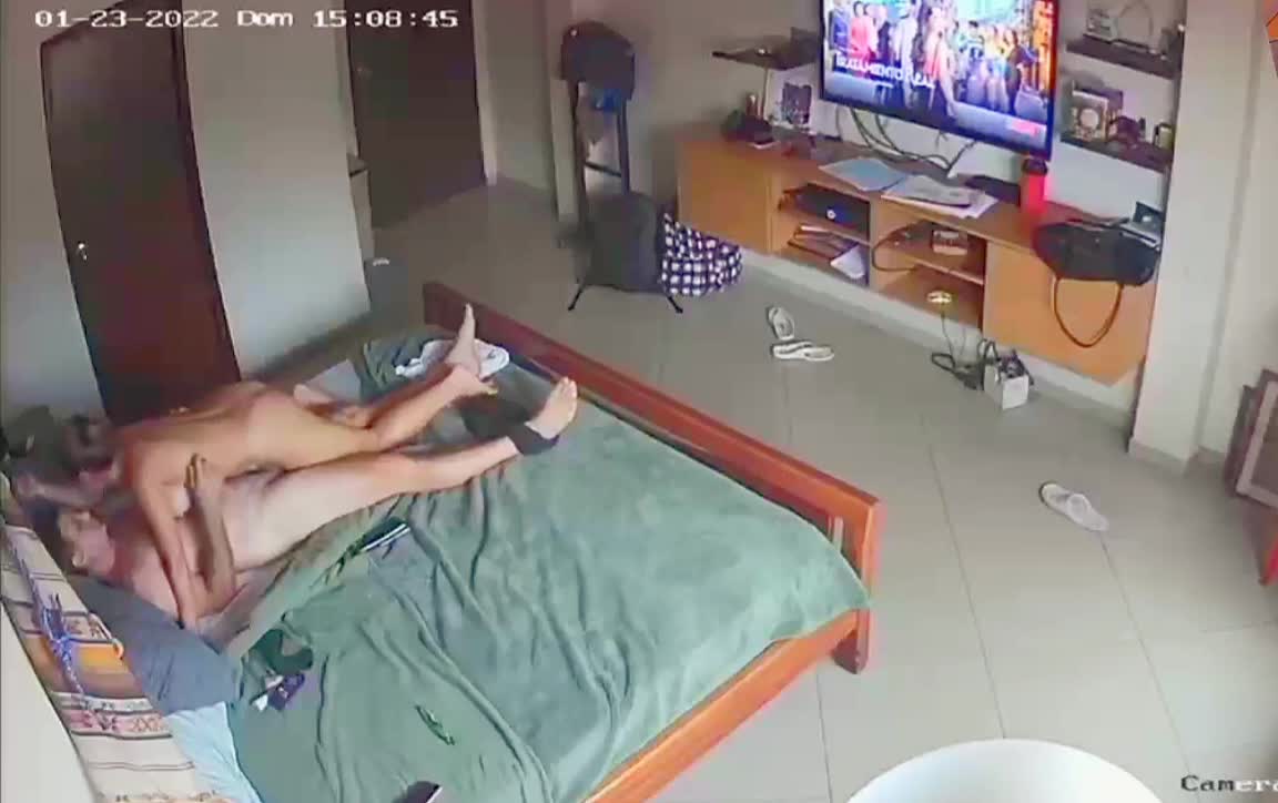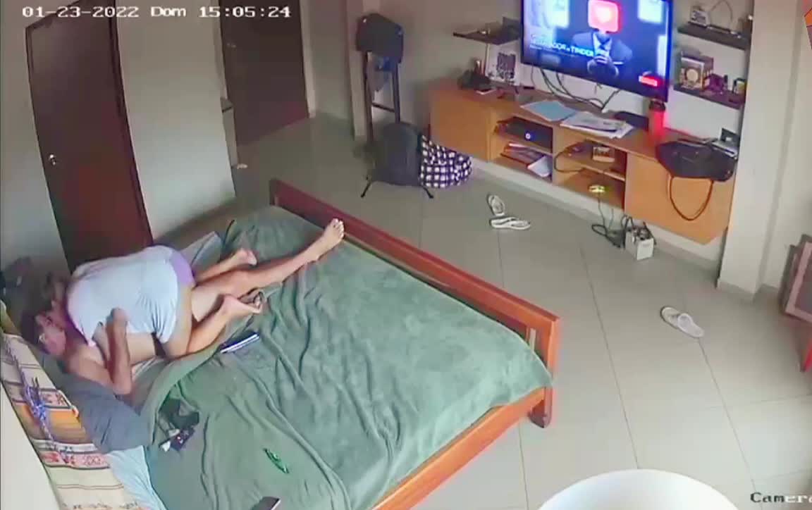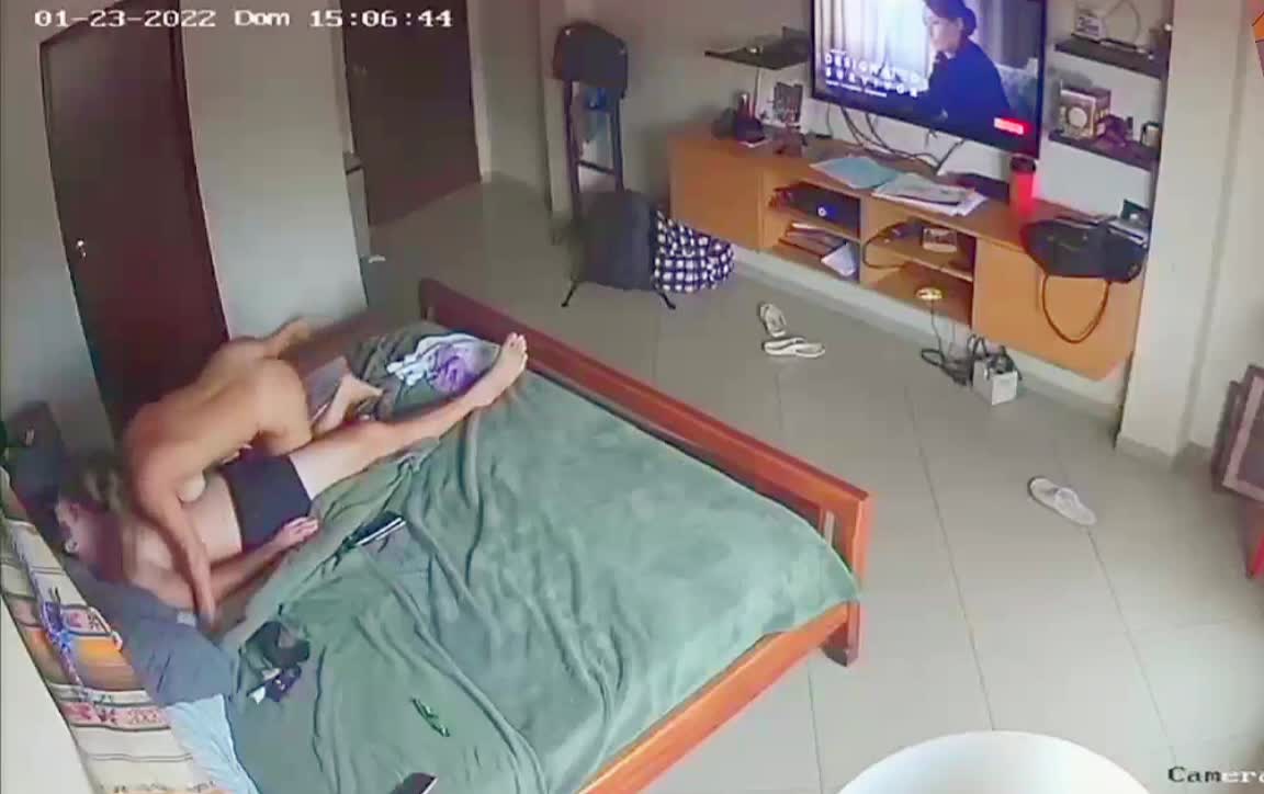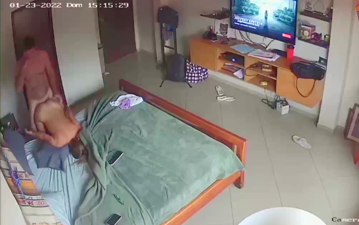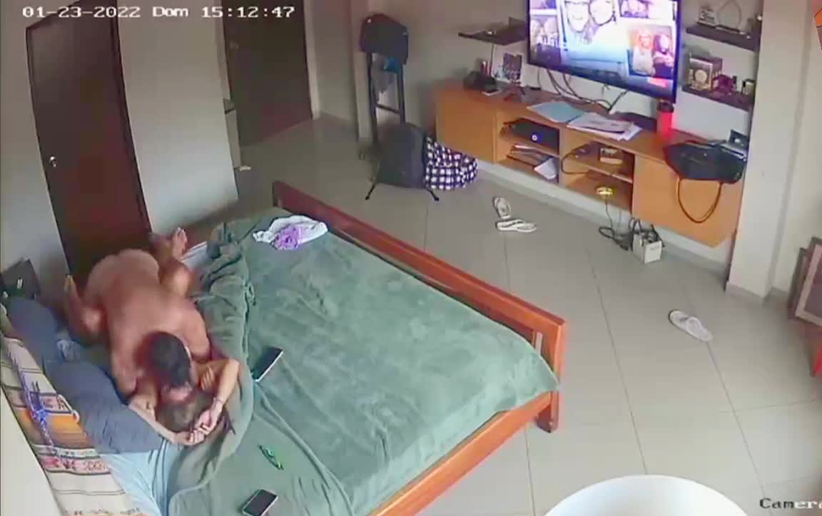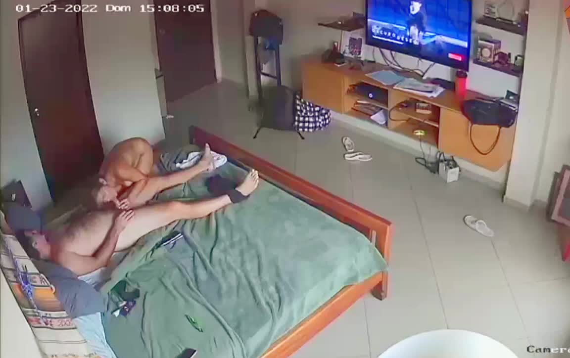 Семейная пара лежала на кровати и решила почпокаться. А камера наблюдает)