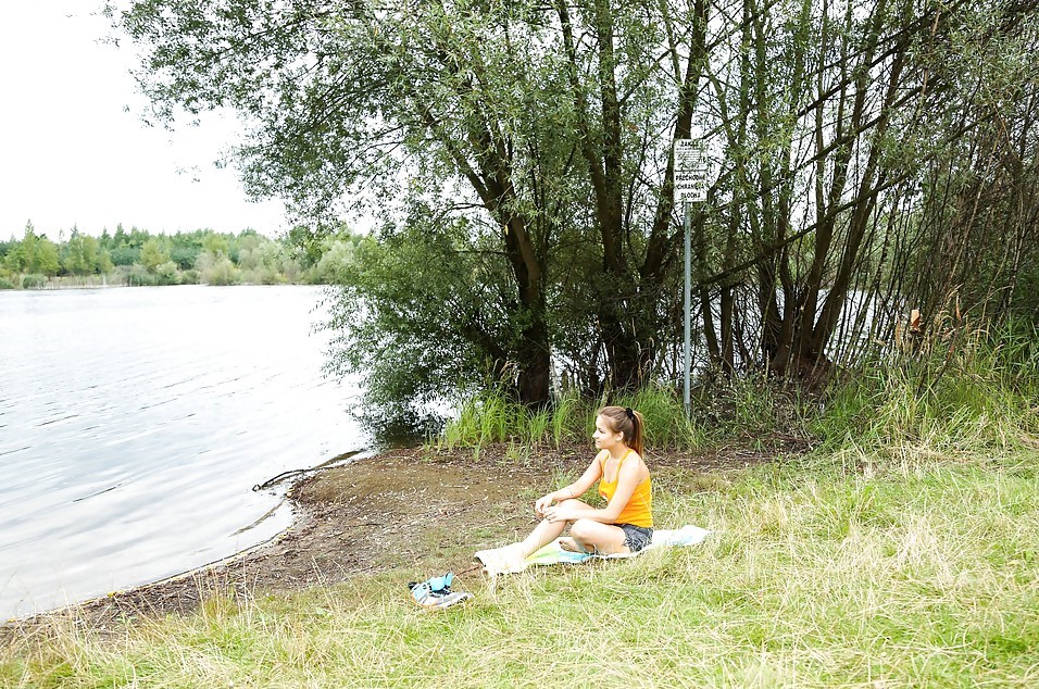 Привлекательно обнажённое загорелое тело молодой Адель собравшейся в озере искупаться!