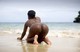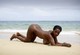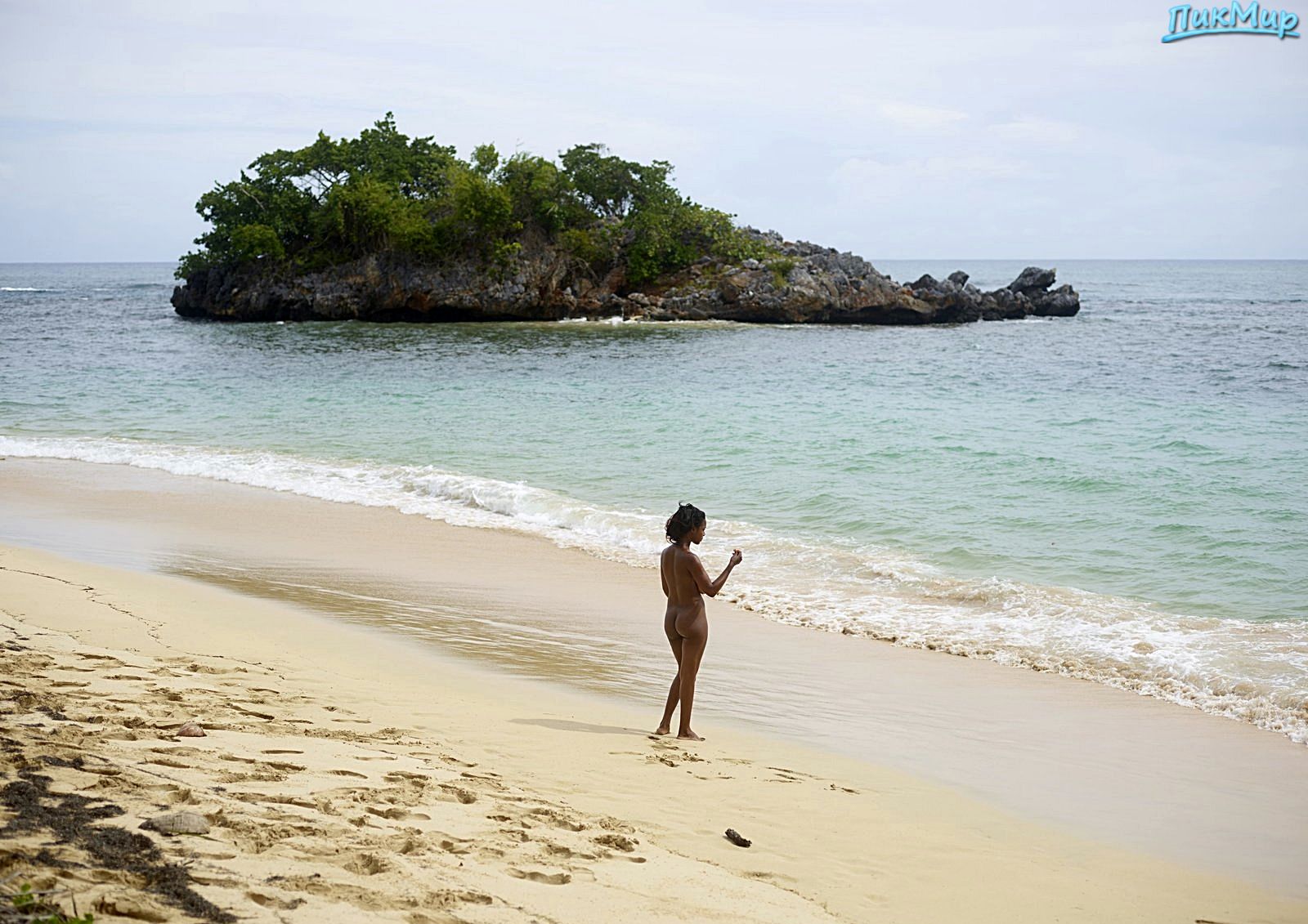 Негритянка с шикарным телом и большими сиськами гуляет по пляжу.