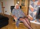 Блондинка-пышка раздевается на одеяле в нейлоне и на каблуках