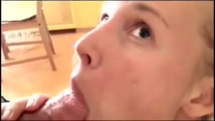 Муж даёт своей супруге отсосать ему член прямо у газовой плиты и кормит её спермой