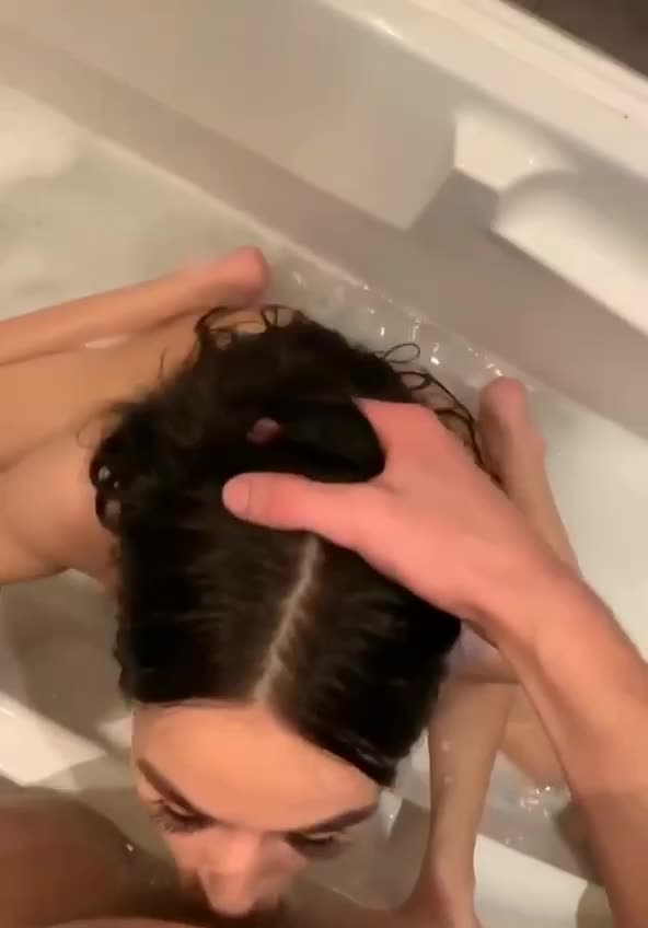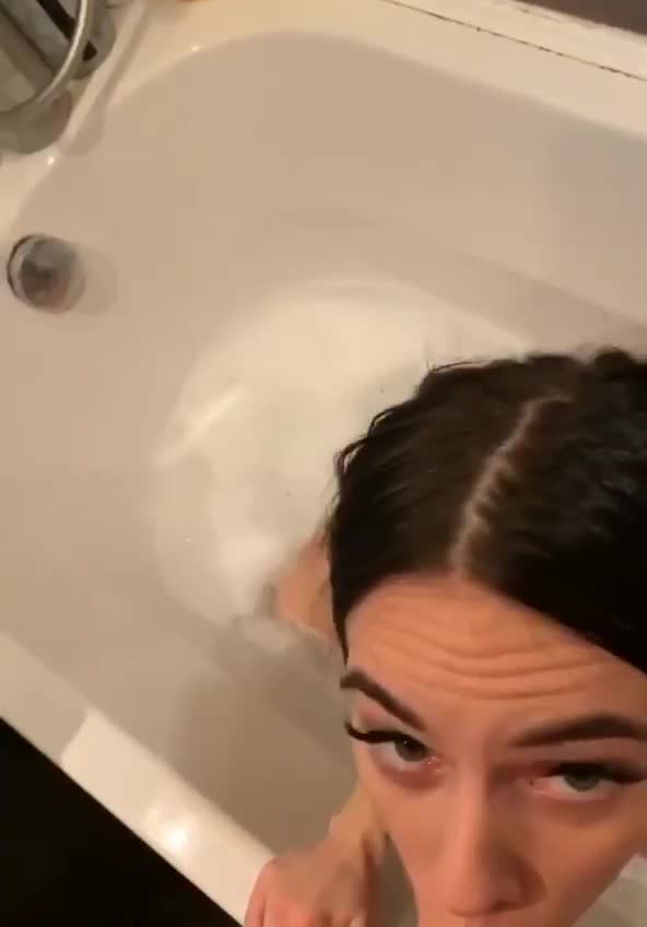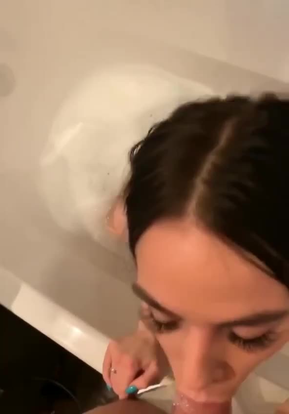 Смачно крупный член отсасывает брюнетистая соска из ванны не вылазя!