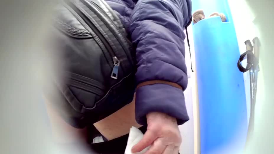Бабка какает в биотуалете, аее снимает скрытая камера.