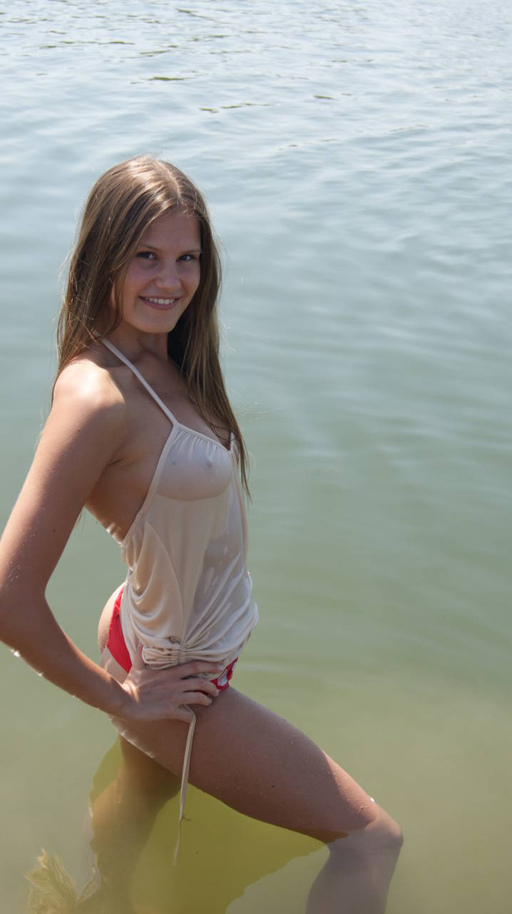 Как только свернутый красный купальник. На её груди удержался.