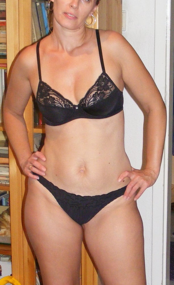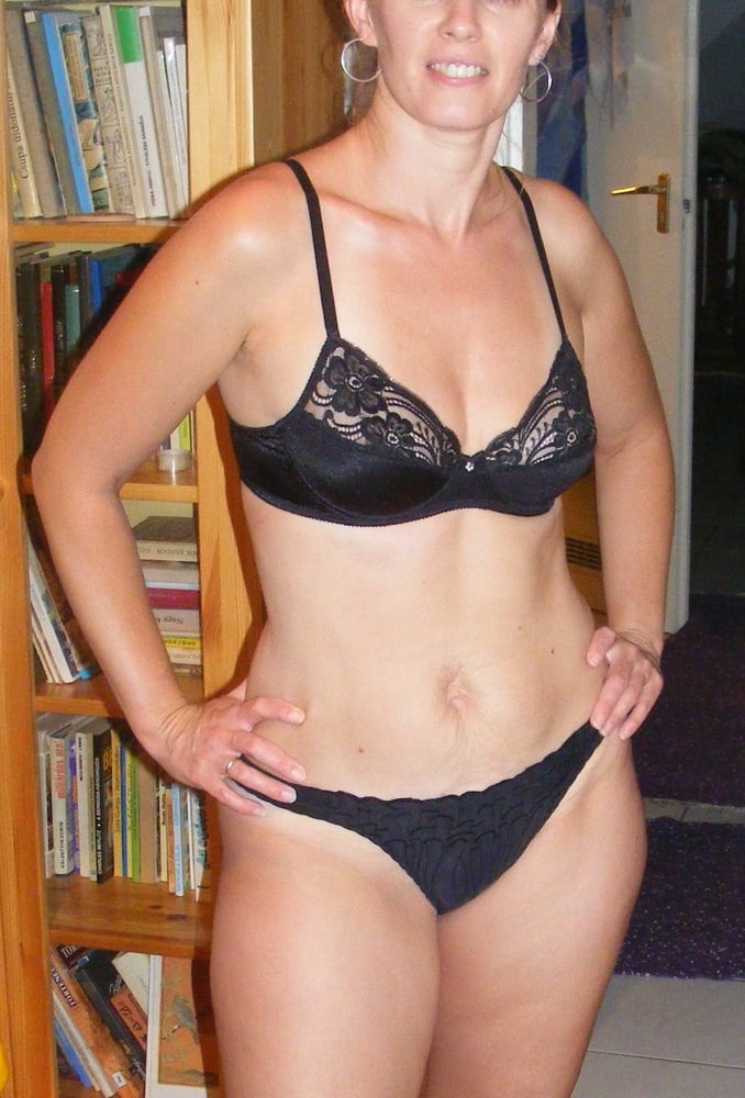 Красивая замужняя женщина позирует в белье и без