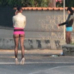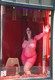Проститутка в витрине борделя заманивает клиентов с улицы