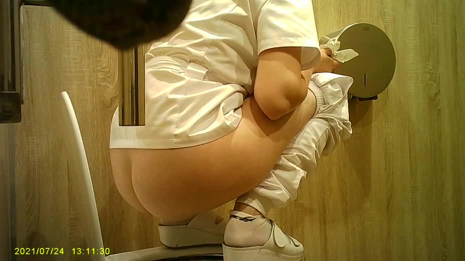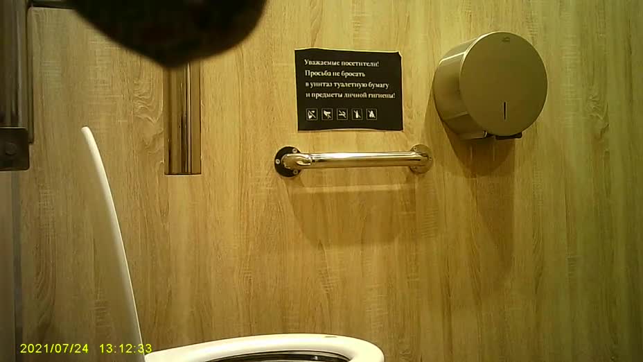 Женщина забежала в туалет по нужде, и попалась на скрытую камеру.