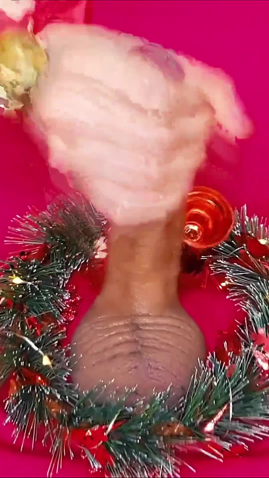 Девушка передёргивает член в новогоднем оформлении до того как из него вылетает сперма