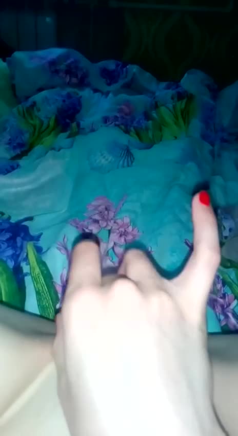 Девушка лёжа в постеле снимает на телефон как играет с писей