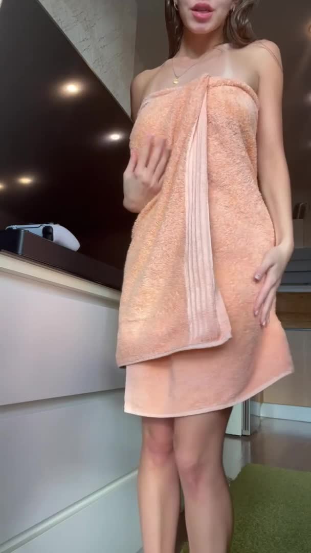 девушка снимает с себя полотенце под которым показывает свою идеальную фигурку
