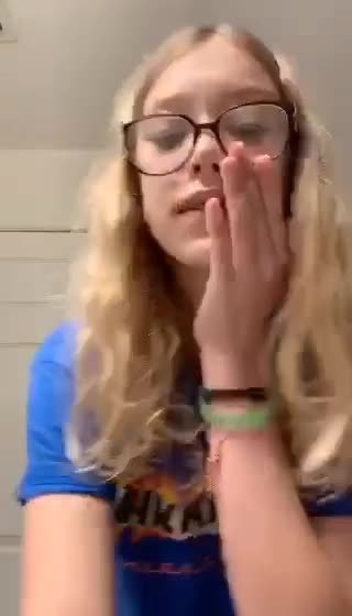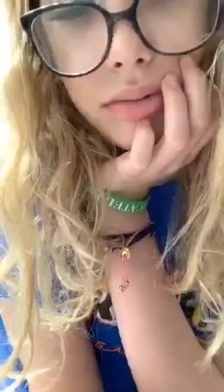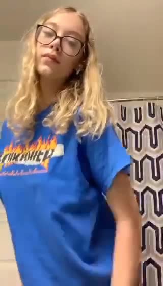 Стройная кучерявая блондиночка в очках раздевается по желанию клиентов в чате