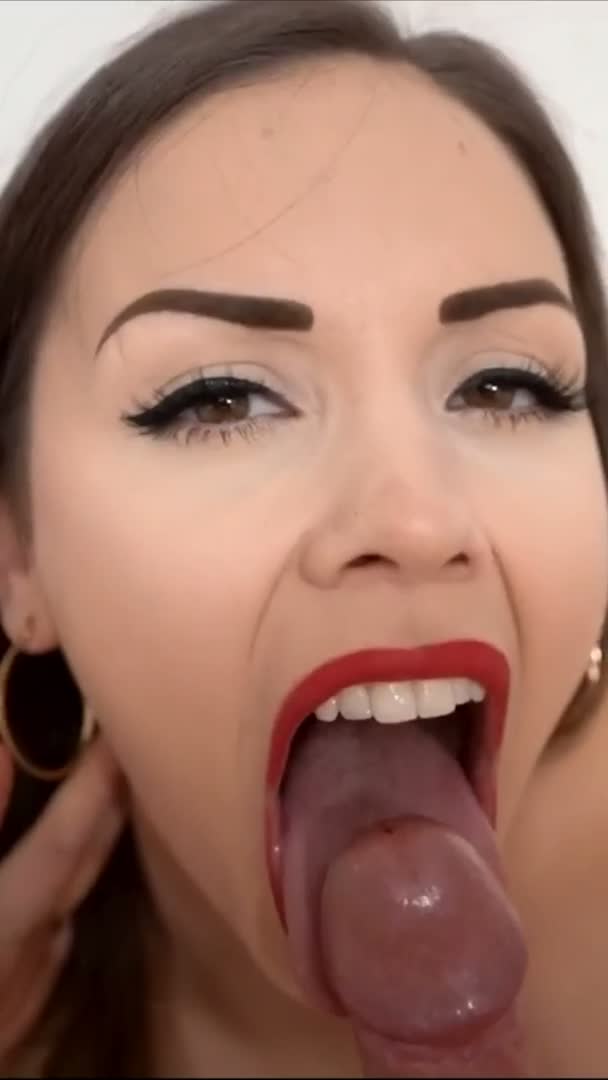 красивая сучка с накрашенными губками язычком доводит до оргазма парня с красивым хуем и получает сперму в ротик