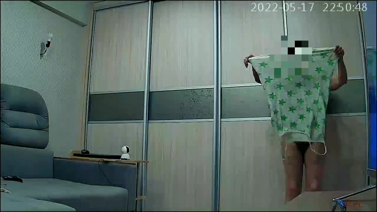 Домашняя шлюшка попалась на камеру наблюдения.