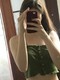 Селфи от стройной девушки без трусиков в зелёном топике с показом киски