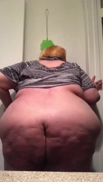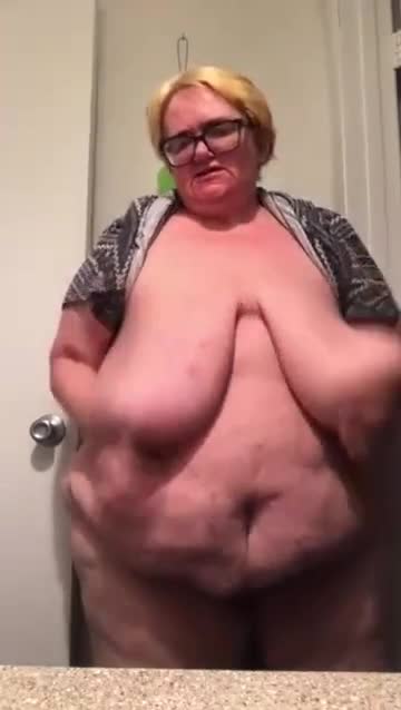 Женщина в возрасте с толстым телом, висячими сиськами и складками на жопе играется на камеру