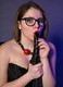 Студийная фотосъемка молодой сабы, играющей с черным флоггером