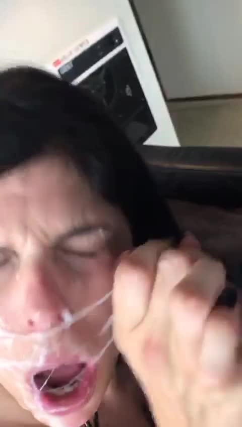 Девушка отсосала и размазывает членом сперму себе по лицу