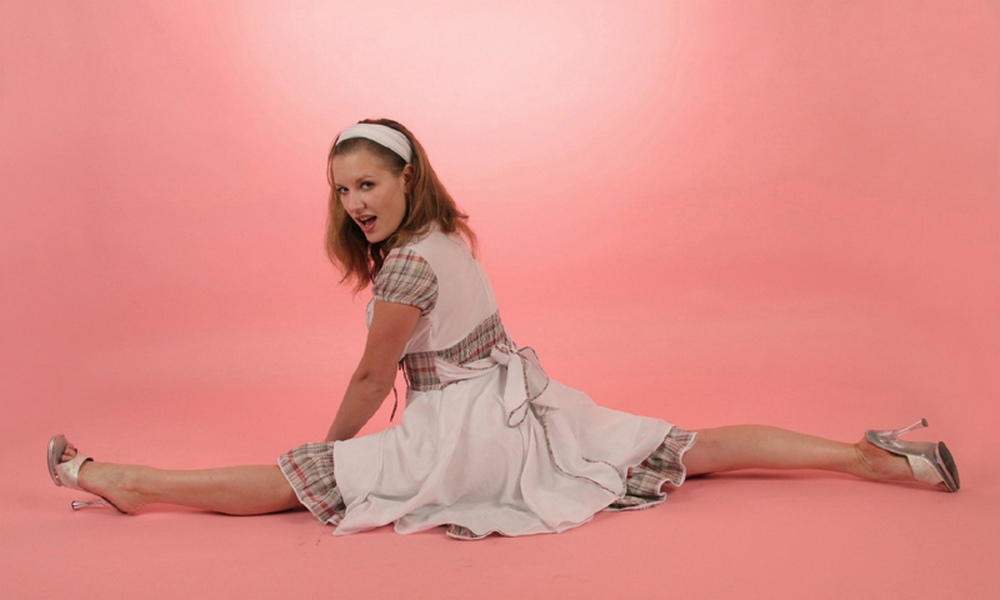 Красотка демонстрирует свою гибкость и показывает свою щелочку.