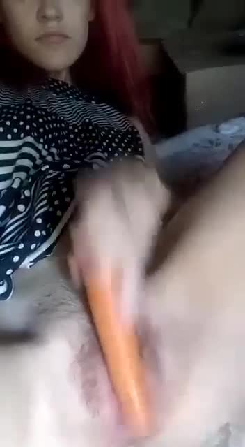 молодая девушка трахает свою киску морковкой наслаждаясь и кончая при этом