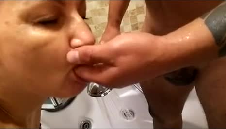Зрелая шлюха с удовольствием подставляет рот под струю мочи...