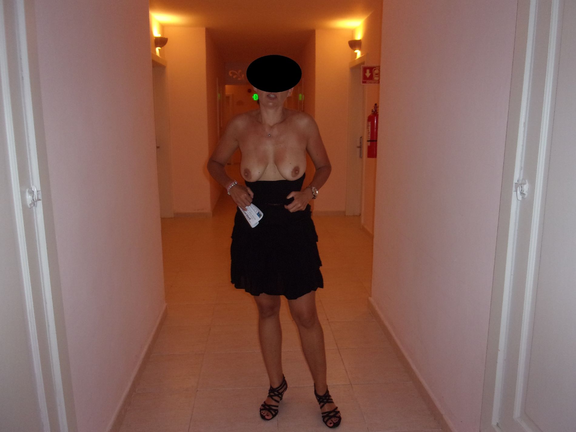 светит прелестями в коридоре и номере.