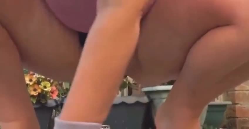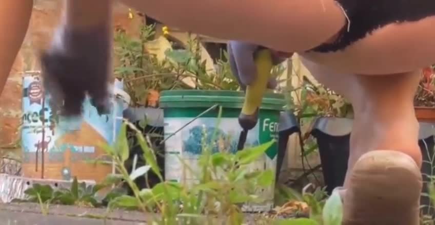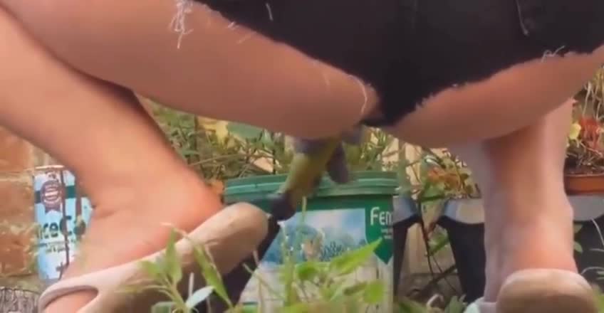 Скрытая камера снимает зрелую соседку в шортиках работающую во дворе дома!