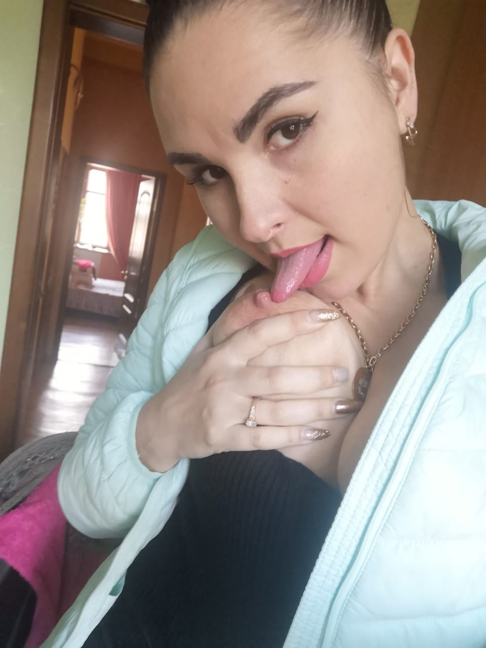 Нимфоманочка наверно, сиси так страстно вытащила надроченные