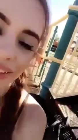 Девушка мастурбирует на детской площадке и снимает видео процесса