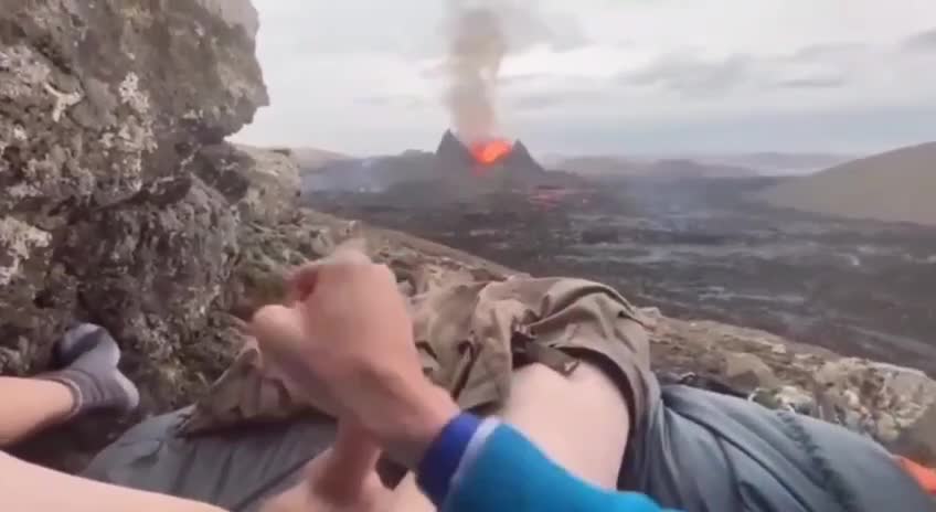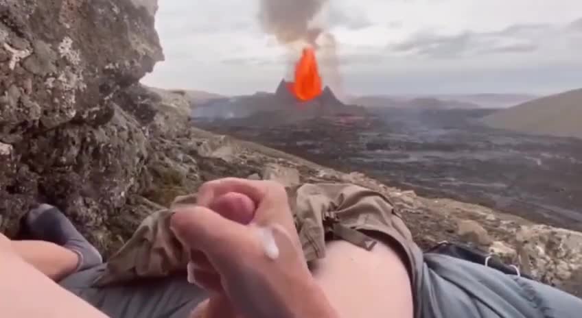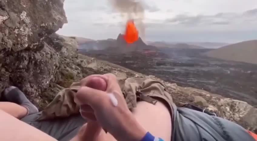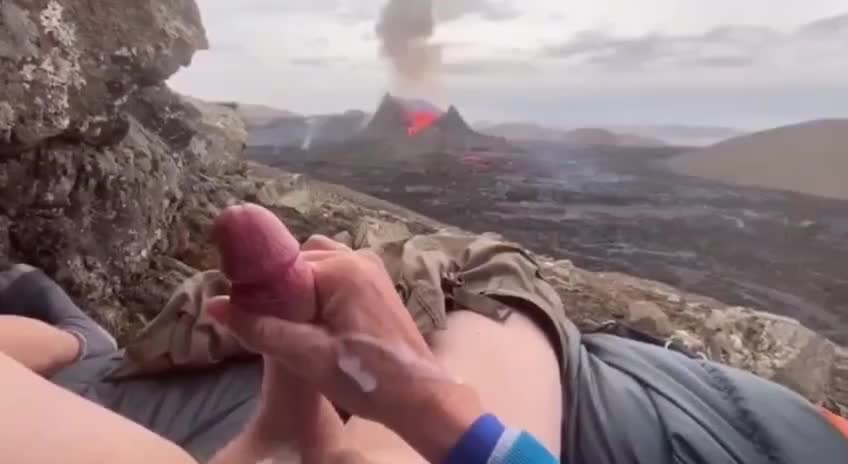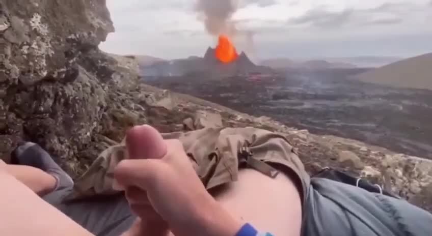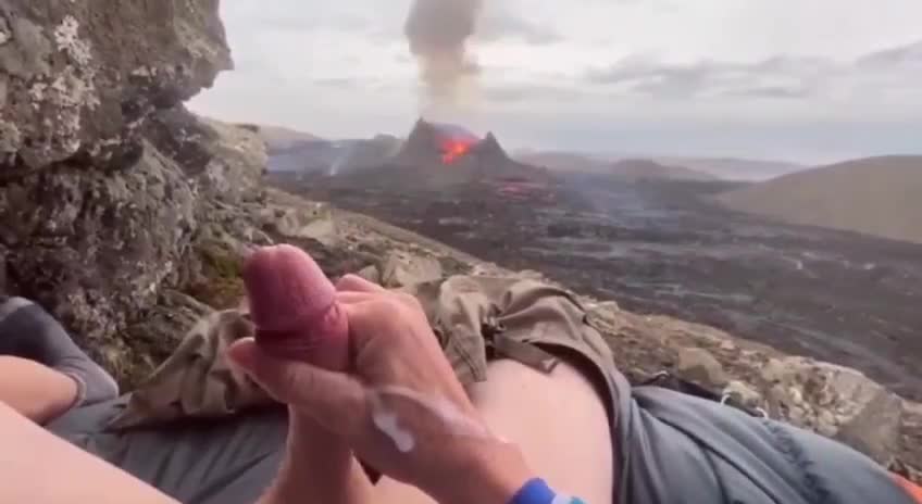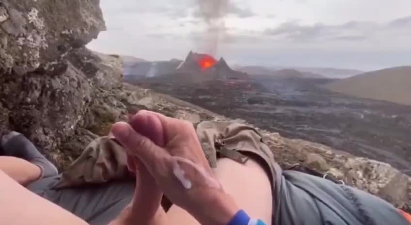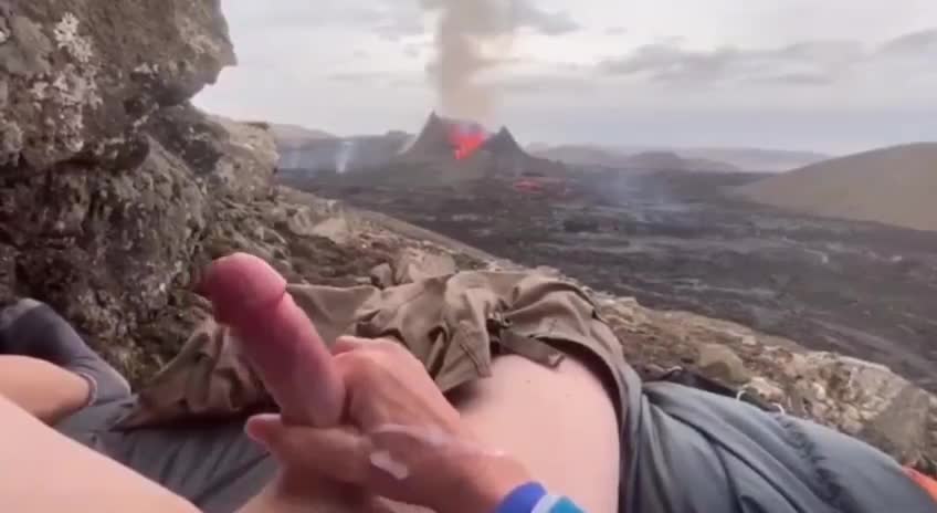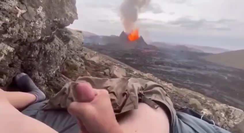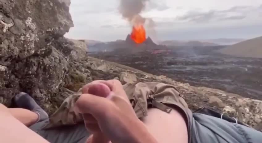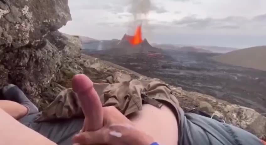 Мужик снимает на камеру как дрочит с видом на вулкан