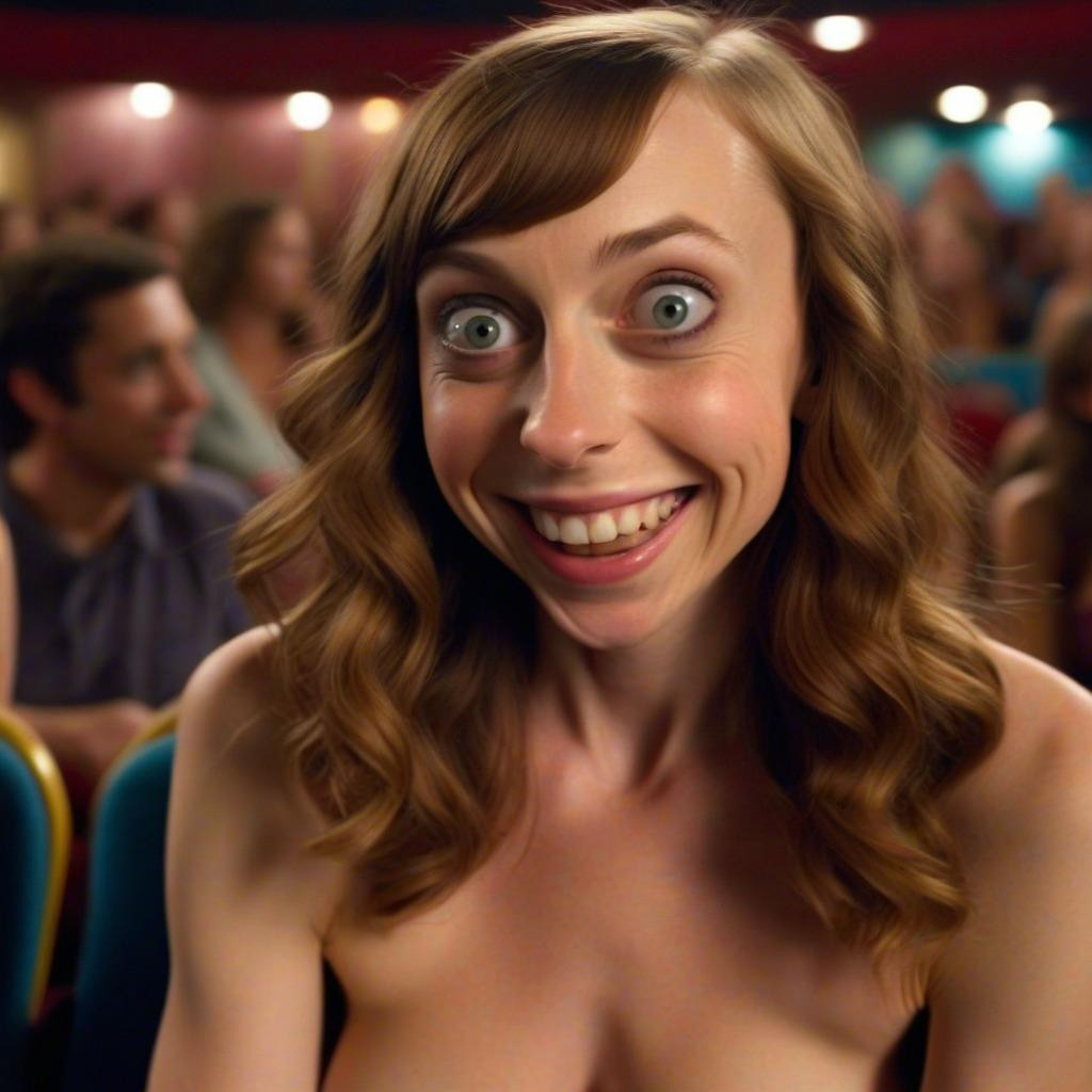 очень странные генерированные картинки с монстрами в кинотеатре (какая-то дич)