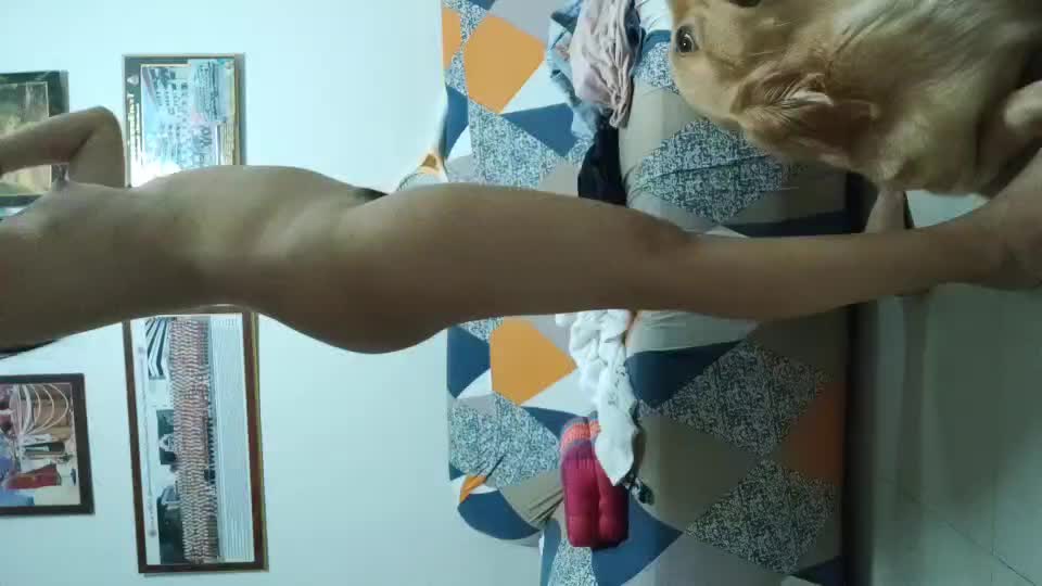 Милая азиаточка с удовольствием снимает своё занятие зарядкой нагишом на камееру