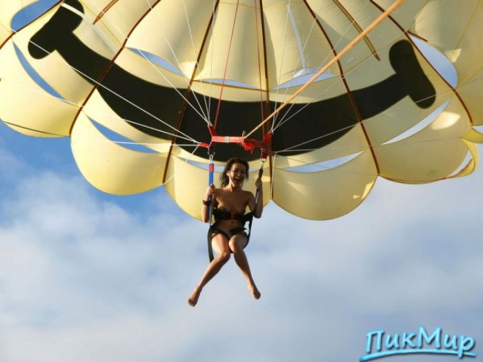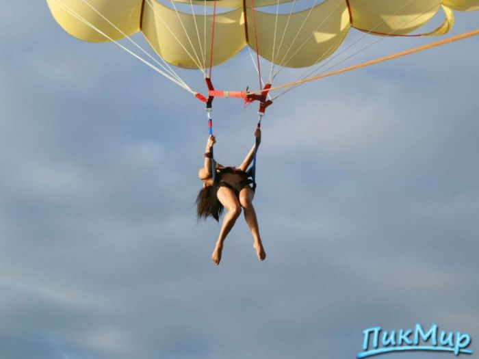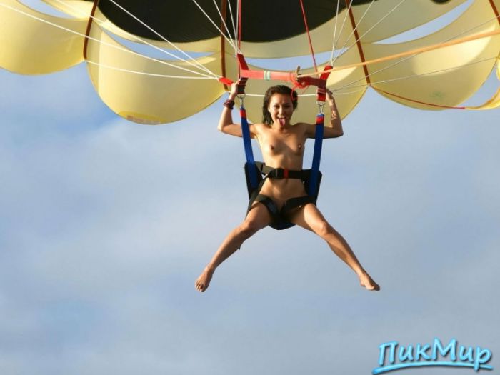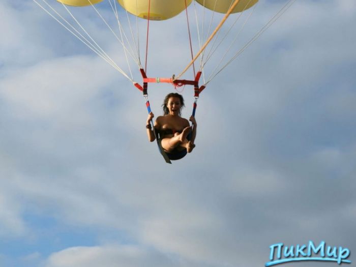 Обнаженная девушка на парашюте