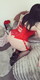 Пышка в красном комплектике призывно позирует и завлекает своего партнёра
