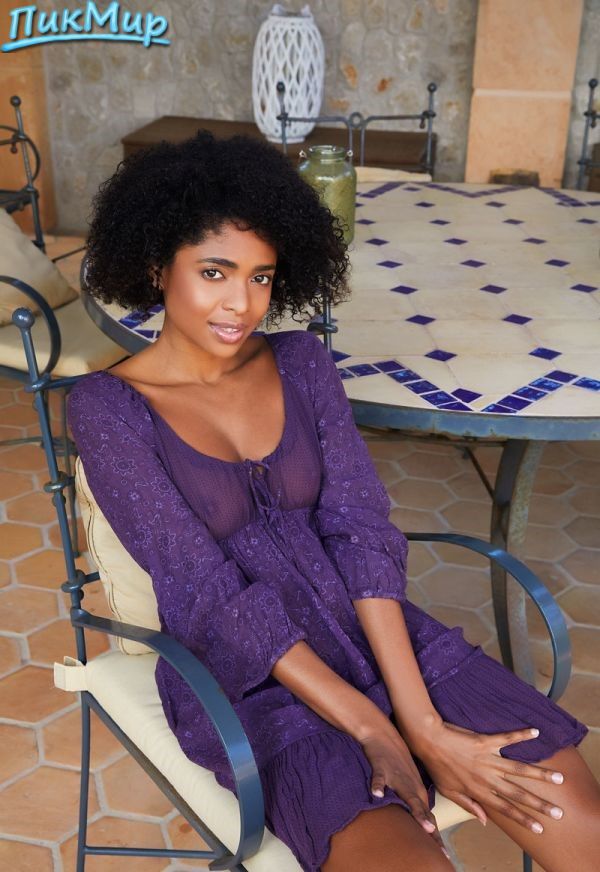 Темнокожая девка раскинув ножки, показала свои интимные прелести.