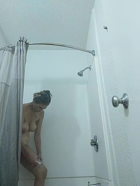 Скрытая камера установленная в ванной снимает бритьё и помывку зрелой стройной женщины!