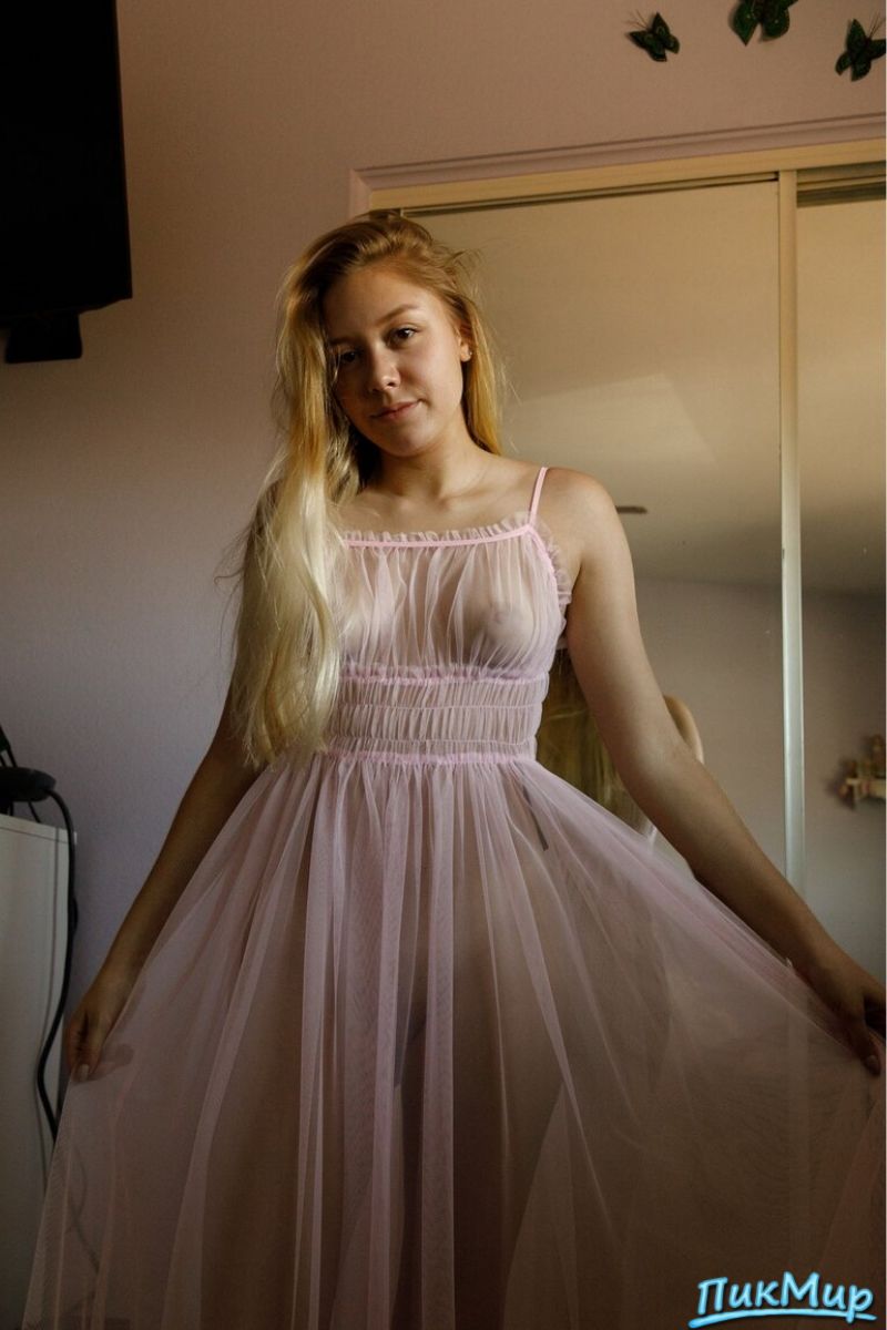 Даже сквозь прозрачное платье можно наблюдать её прелести.