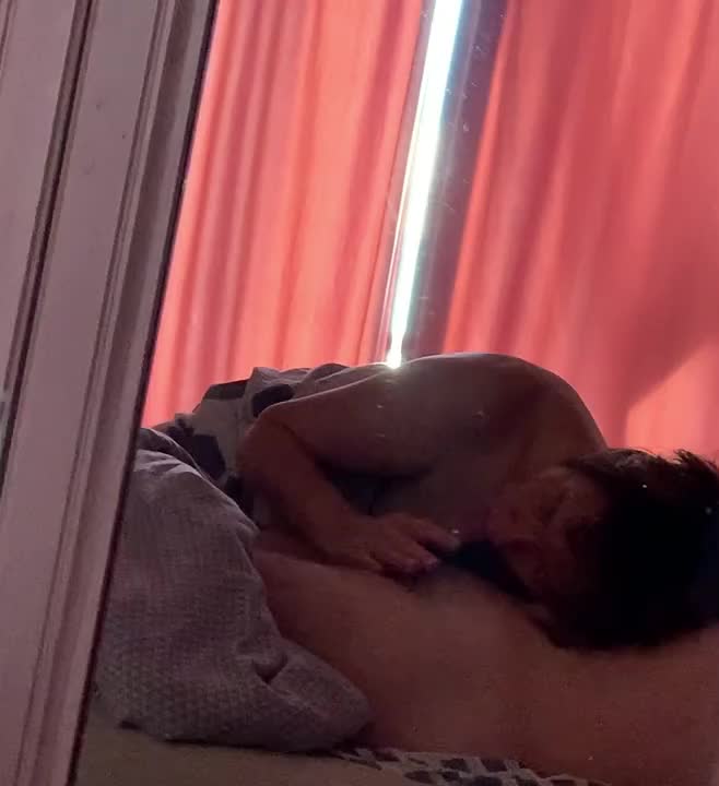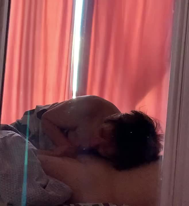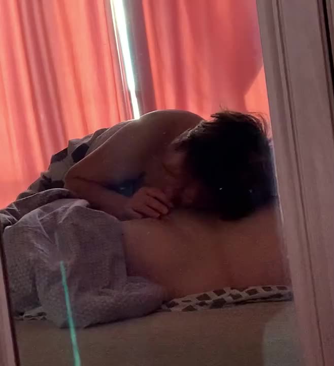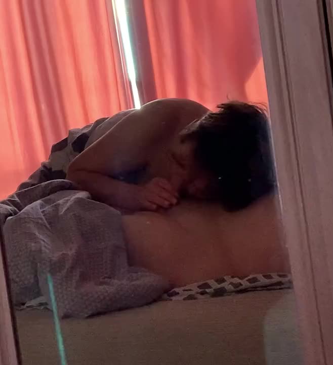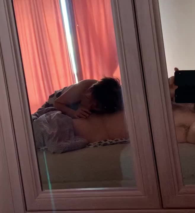 Муж снимает в зеркале,как его жена Настя делает ему утренний минетик!