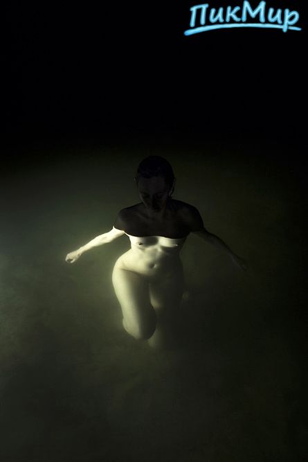 Интересная и необычная фотосессия обнаженной женщины под водой.