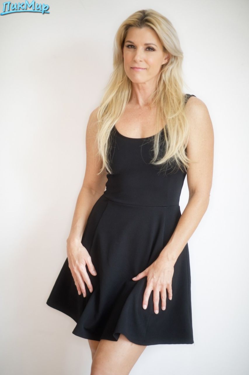 Шикарная блондинка снимает черное платье и показывает свое голое тело