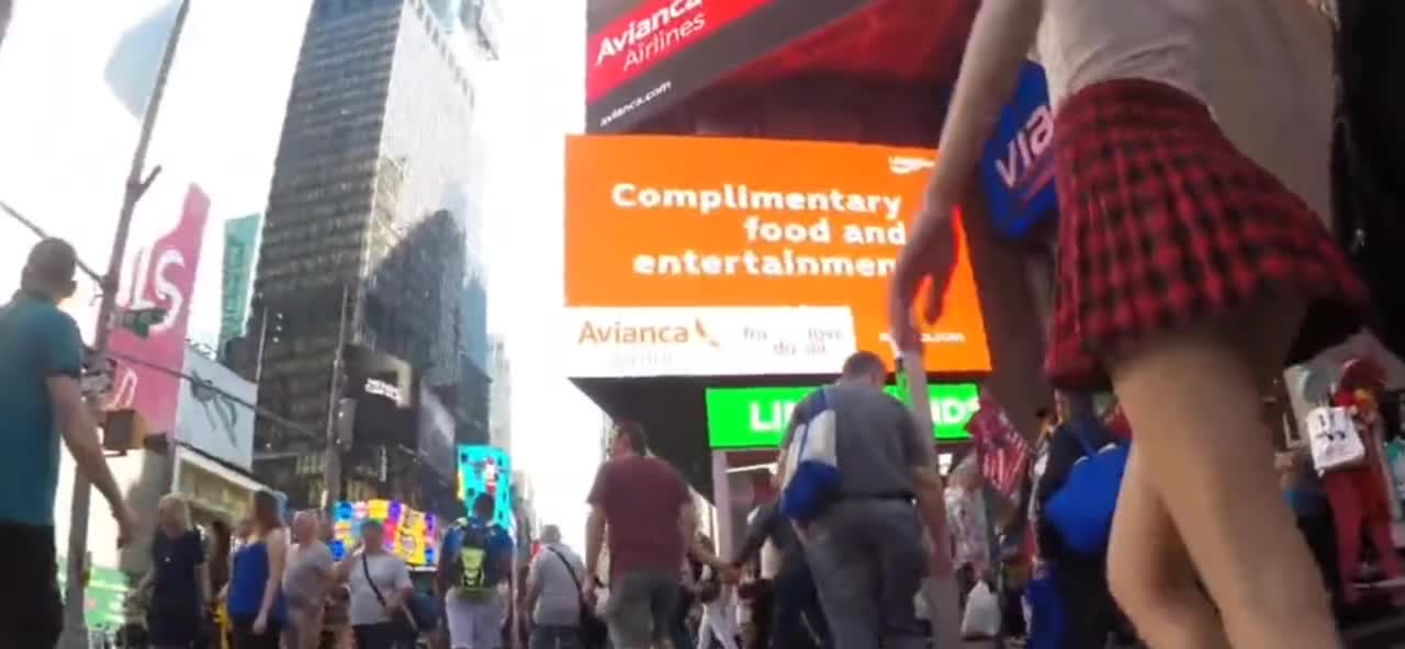 Преследуют девушку в клетчатой юбочке и снимают что под юбочкой у ней