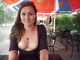 Вполне уверенно молодуха соблазняет парня в летнем кафе.